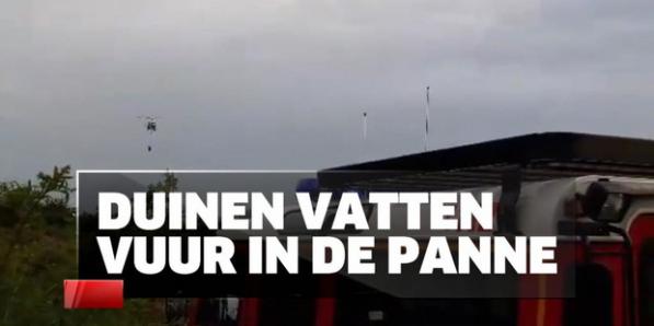Video | Nieuws Video | Nieuws Duinen vatten vuur in De Panne In De Panne was er gisteren een brand in de duinen. De helikopter van de federale politie werd ingezet om met waterzakken te helpen blussen. Er ging uiteindelijk zo'n 1.500 vierkante meter duinen in vlammen op.