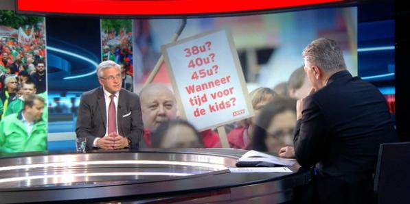 Video | Nieuws Video | Nieuws Peeters: "38-urenweek wordt niet afgeschaft" Bij vakbonden en veel werknemers wordt Kris Peeters steeds langer gezien als de doodgraver van de 38-urenweek, maar in de studio van VTM NIEUWS ontkent de minister dat hij die wil afschaffen. "Dat is niet juist. En als ze zeggen: 'wij willen ook instrumenten om het werk werkbaar te maken' - dat is ook onze bedoeling. Deze hervormingen zijn absoluut noodzakelijk en wij willen luisteren naar de vakbonden. Maar zij moeten ook redelijk zijn en niet beginnen stakingen en betogingen te organiseren voor ze tekst en uitleg hebben gekregen van de bevoegde minister."