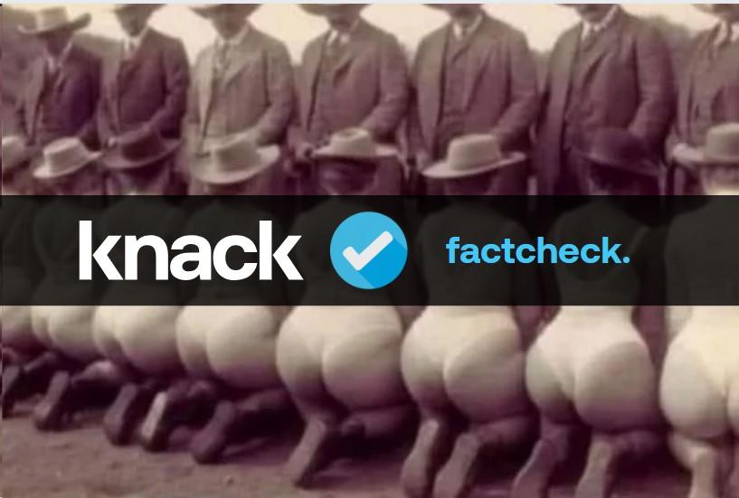 Op het internet circuleert een zwart-witfoto waarop negen vrouwen in ondergoed knielen voor een aantal mannen. De vrouwen zouden op die manier vergiffenis vragen aan hun mannen en het zou gaan om een oude eindejaarstraditie, stelt het bijschrift bij de foto. Maar het beeld blijkt gemaakt met artificiële intelligentie.