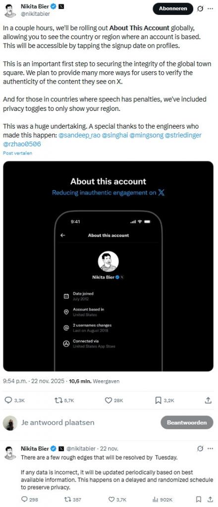 Ook uit reacties op de aankondiging van de locatiefunctie door Nikita Bier, het hoofd van de divisie Productontwikkeling bij X, blijkt dat er nog wat ‘ruwe randjes’ aan de functie zitten.
