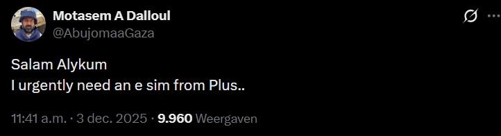 Daarbij komt ook dat er in regio’s zoals Gaza vaak geen internetinfrastructuur meer is, of dat er beperkingen opgelegd zijn op het internet door de overheid, stelt Desmet. ‘Daardoor gebruiken veel mensen een combinatie van eSIM en VPN-services.’ Met eSIM-kaarten kun je mobiel netwerk tot in Gaza krijgen vanuit het buitenland. Ook Dalloul maakt daar gebruik van, zo blijkt uit deze post op X.