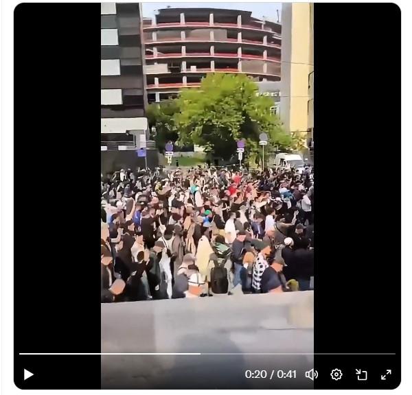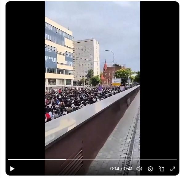 In de beelden van de betoging die AFP op YouTube postte vinden we de virale beelden niet terug. De locatie die de virale beelden tonen, komt evenmin aan bod.