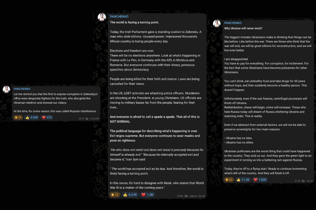 Panchenko beweert al lange tijd dat er corruptie in Oekraïne is. Op haar Telegramkanaal zegt ze dat zelfs meerdere keren per maand. Op de afbeelding hieronder leest u berichten uit de maand december die automatisch van het Russisch naar het Engels zijn vertaald.