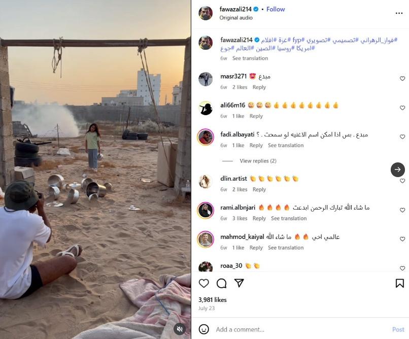In de Community Note lezen we dat de beelden zouden zijn opgenomen in Saudi-Arabië, als onderdeel van een kortfilm van regisseur Fawaz Al‑Zahrani. Op het Instagramaccount van die regisseur vinden we gelijksoortige video’s terug, waarin openlijk wordt getoond dat het om een filmscène en niet om echte oorlogsbeelden gaat.