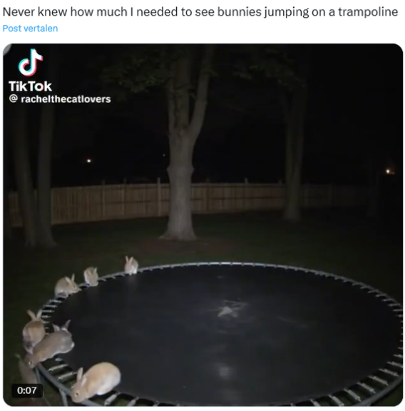 – Op sociale media circuleert een video waarin een groep konijnen te zien is die op een trampoline springen.