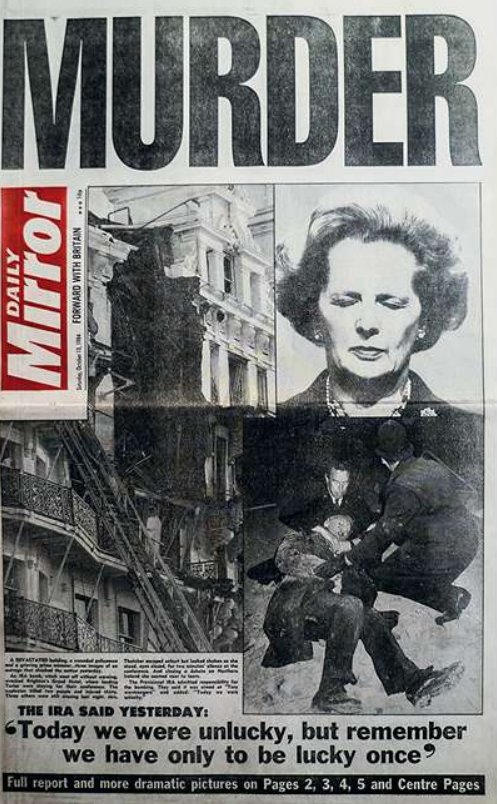 De bomaanslag was niet alleen een poging om ons congres te verstoren. De IRA wilde gewoon de democratisch verkozen regering van Hare Majesteit verminken. Dit is de ware omvang van de gewelddaad die ons allen getroffen heeft.