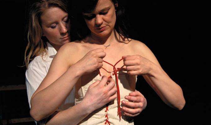 LAUREYS: De touwen staan symbool voor het schip, voor kracht en voor het mannelijke. We snoeren ons in die touwen in. Intussen bespeelt Frans Grapperhaus cello, een erg vrouwelijk instrument vinden wij. Zo tonen we hoe de vrouw ingesnoerd en bespeeld wordt door de man, maar evenmin zonder hem kan. Zich deels inspirerend op de piratenliederen die Anne en Mary bezingen, maakte Grapperhaus een compositie die het spel ondersteunt. Zijn cello zal kraken als een schip, blazen als de zeewind en twee vrouwen teder door hun moedige leven leiden. Iets wat elke man hoort te doen. Als hij het leven begrijpt. (grijnst)