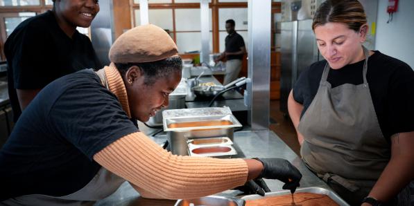 Maatschappij Maatschappij Een dag in restaurant Samenloop, waar asielzoekers koken: ‘Ik droom van een eigen restaurant in België. Ik voel dat het erin zit’ In het Antwerpse restaurant Samenloop kunnen asielzoekers werkervaring opdoen om zich klaar te stomen voor de arbeidsmarkt. De sfeer is er even goed als het eten.