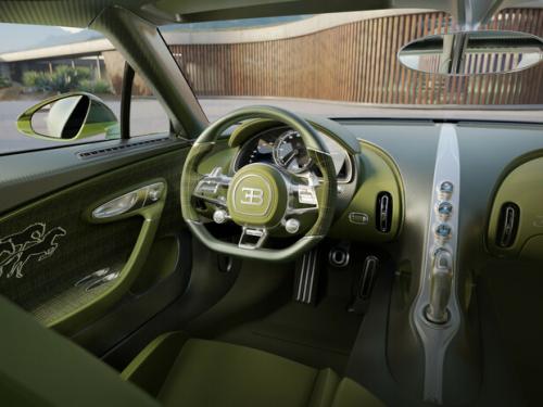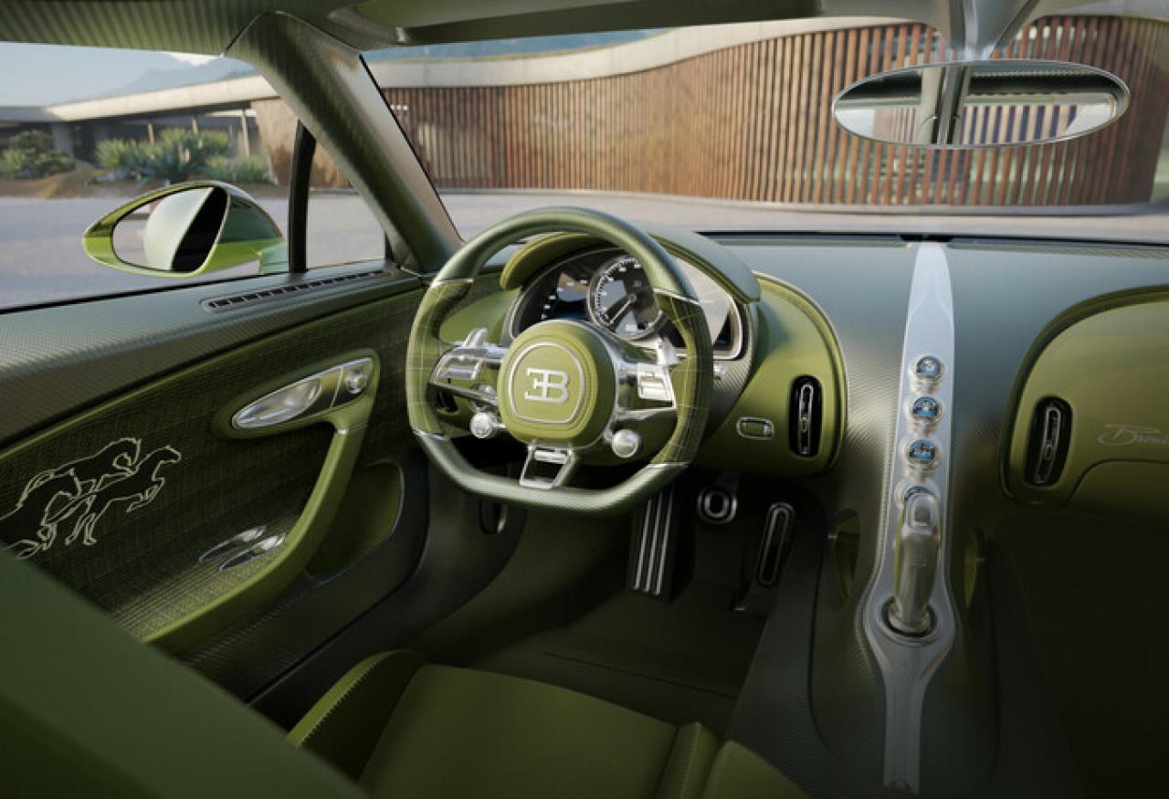 De link met het paard Brouillard komt vooral tot uiting in het interieur. Daar zitten de trekken van het geliefde dier van de merkstichter keurig in de decoratie en de afwerking. Verder herken je in deze unieke Bugatti ongetwijfeld veel details uit andere modellen van Bugatti. De neuspartij bijvoorbeeld in de stijl van de Tourbillon, de uitlaatlijn in de opstelling van de Chiron Super Sport, de ducktail achteraan zoals op de Chiron Profilée of de luchtinlaten op het dak die al op de Veyron stonden.