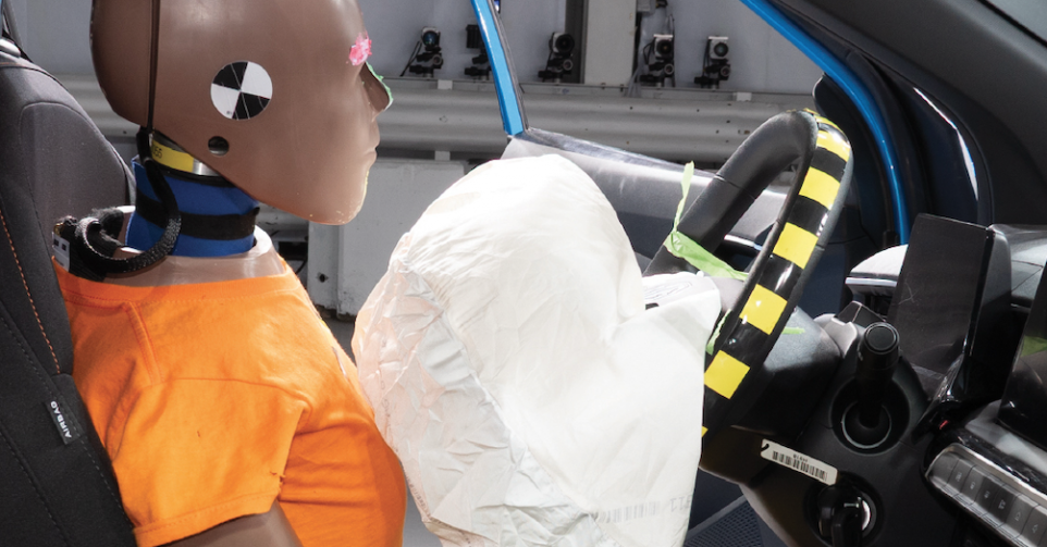 Die laatste vervormde bij een frontaal impact waardoor de dummypop op de bestuurdersstoel niet in de juiste crashpositie zit. Dat zorgt voor een harder impact op de borst, het hoofd dat mogelijk het stuur kan raken omdat het bovenlichaam een beetje wegdraait en een groter impact op het dijbeen.