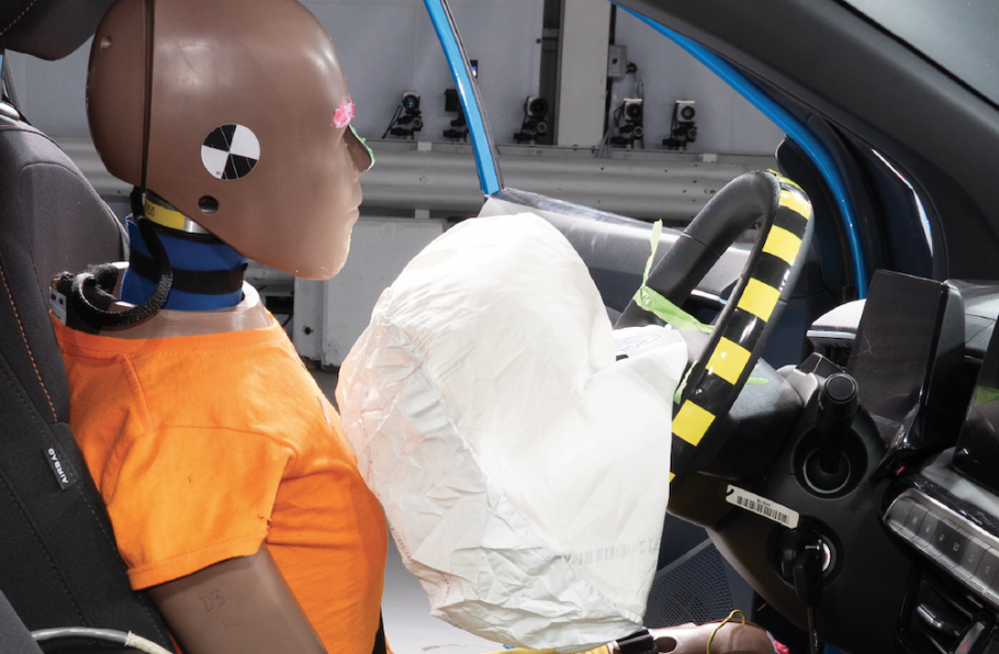 Die laatste vervormde bij een frontaal impact waardoor de dummypop op de bestuurdersstoel niet in de juiste crashpositie zit. Dat zorgt voor een harder impact op de borst, het hoofd dat mogelijk het stuur kan raken omdat het bovenlichaam een beetje wegdraait en een groter impact op het dijbeen.