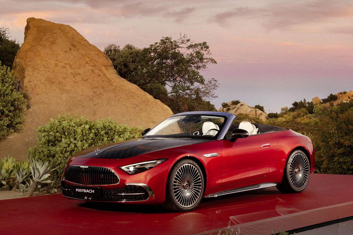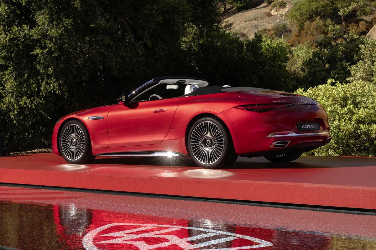 De nieuwkomer is rijkelijk voorzien van chroom, van de fijne vin over de motorkap tot het voorruitframe en de dorpelpanelen. De uitstekend geïsoleerde softtop is bekleed met een lichtzwarte stof met een antraciet Maybach-patroon. De achterzijde van de auto wordt gekenmerkt door achterlichten met Maybach-lichtsignatuur. Binnenin overheerst kristalwit nappaleer dat zacht aanvoelt en chique uitziet.