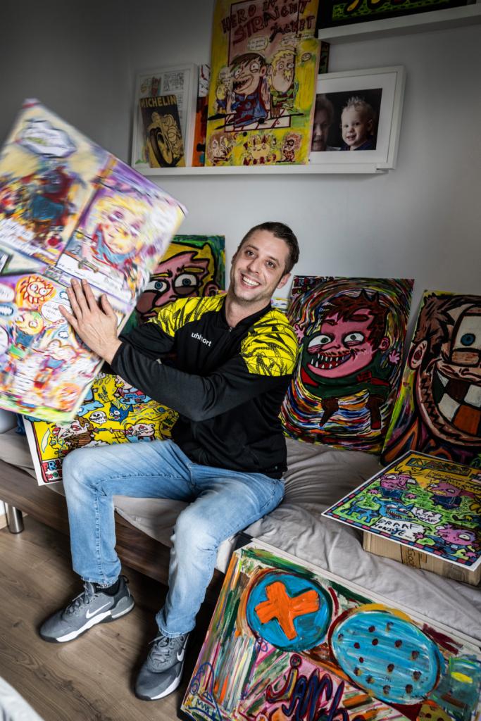 Jan draait zich om. Groot, stevig, tattoo op de arm. Hij lijkt een beetje op kunstenaar Rinus Van de Velde. Een sympathieke kerel van 34. ‘Ik heb een tekening uitgekozen voor bij het artikel’, zegt hij.