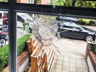 Pas een dag later komt de politie langs na een melding van een buurtbewoner. Wanneer de agenten arriveren is de eigenaar volop bezig met herstellingswerken. Op politiebevel moet hij onmiddellijk stoppen met het dichten van de kogelgaten met stopverf.
