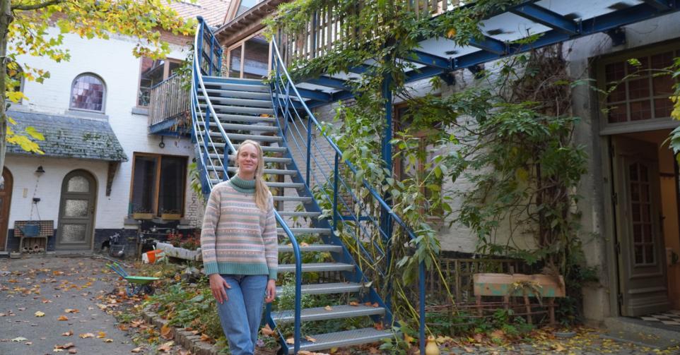 Tussen veld en dorp ligt Het Abtshof. Een ecodorp in het Limburgse dorpje Borlo, dat voor een twintigtal bewoners hun thuis is. Ook voor Elise Descheemaeker (26) en haar partner Jakob is dat al drie jaar zo. ‘Tijdens de coronapandemie merkten we dat er iets ontbrak aan het klassieke samenwonen met ons tweeën. Dat was het begin van onze zoektocht naar een vorm van gemeenschapswonen. Via een woonbeurs kwamen we terecht bij Het Abtshof, dat op dat moment op zoek was naar nieuwe bewoners’, vertelt Elise enthousiast.