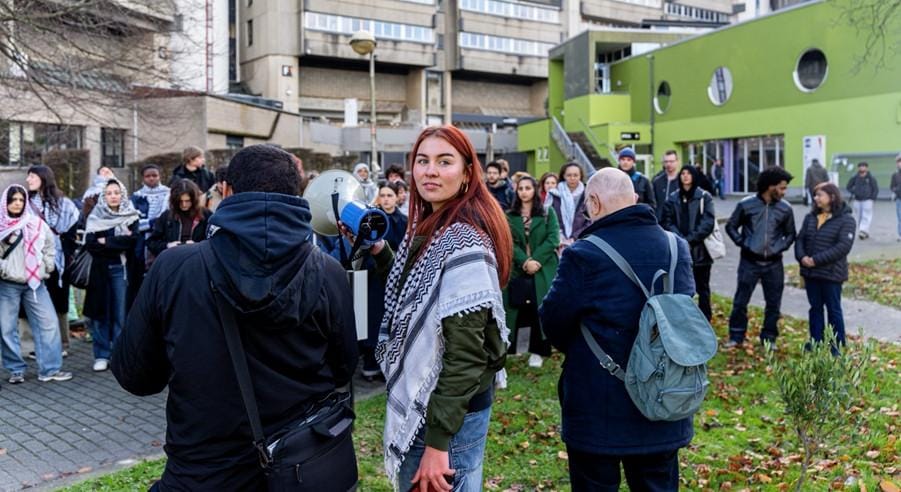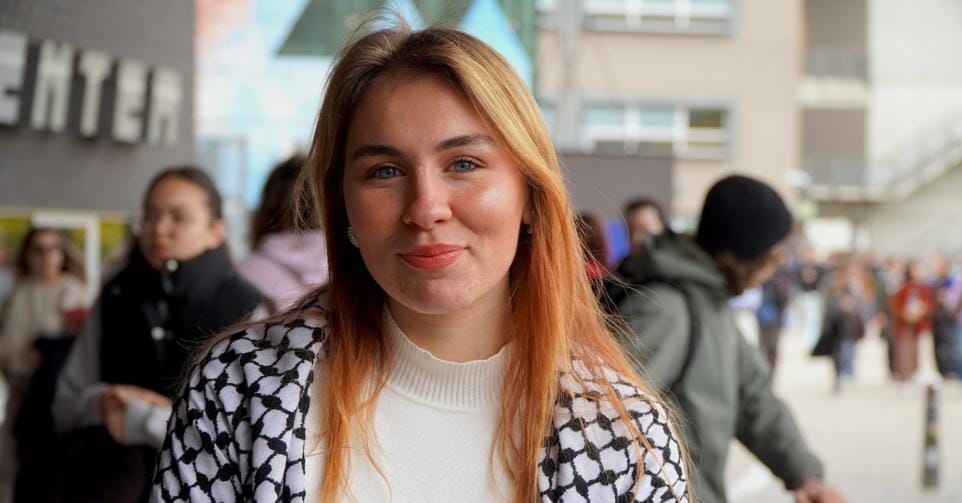 Toen ze aan haar eerste jaar begon, brak kort daarna de oorlog in Gaza uit. ‘Na 7 oktober werd ik wakker geschud’, vertelt ze. ‘Ik hoorde overal stemmen die zich uitspraken tegen de genocide en ik kon niet gewoon blijven toekijken.’ Twee jaar geleden had ze nauwelijks kennis van Palestina. ‘Ik wist niet wat er precies gebeurde. Nu zet ik me er dagelijks voor in. Dat toont hoe snel mensen kunnen veranderen.’