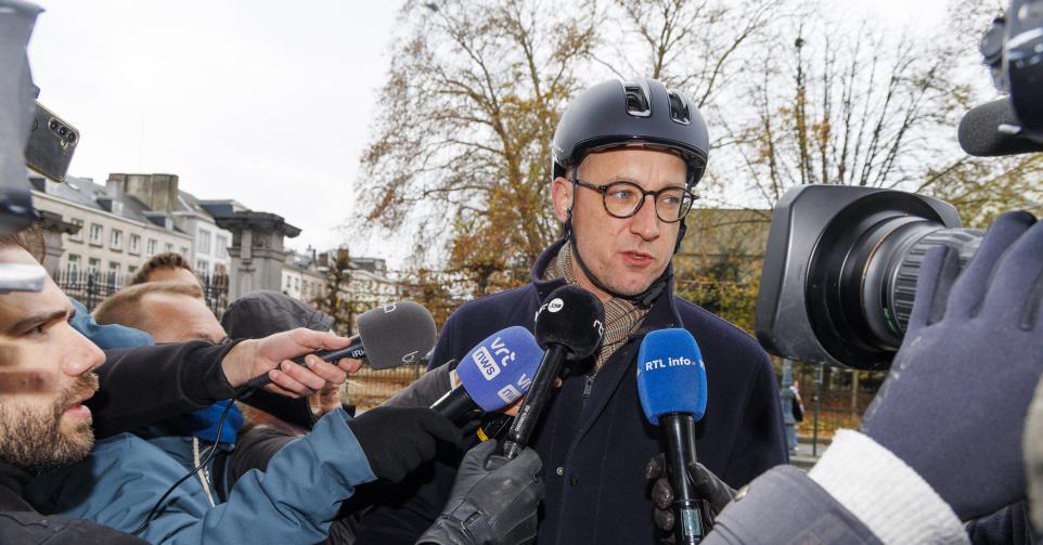 Vice-premier en minister van Financiën Vincent Van Peteghem komt aan bij het Federaal parkement voor het 'kernkabinet' van de Federale regering op zondag 23 november 2025 in Brussel.