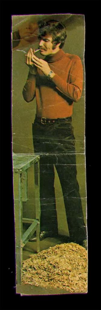 Sonja van Hamel: Toen ik geboren werd, waren mijn ouders al uit elkaar. Mijn moeder heeft mij alleen in Amsterdam opgevoed. Af en toe vertelde ze over mijn vader. Ze wilde me een beeld geven, maar had geen foto van hem. Op een dag knipte ze een plaatje uit Libelle of een ander vrouwenblad. ‘Dit is waarschijnlijk je vader’, zei ze. ‘Het zou hem kunnen zijn, maar misschien ook niet.’ Een beetje surrealistisch. Dat knipsel heb ik altijd bewaard. Voor mijn eindexamen aan de kunstacademie heb ik een boekje gemaakt met allemaal familiefoto’s. Dat plaatje heb ik erin gephotoshopt, omdat het voor mij symbool stond voor de afwezige vader. Photoshop was toen nog helemaal nieuw — zoals AI nu. Ook toen was ik supernieuwsgierig naar de mogelijkheden. Ik vond dat een heel leuk, spannend medium. Maar mijn familie vond het toch wat choquerend dat er plots een man met een snor tussen hen stond. (lacht)