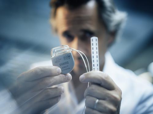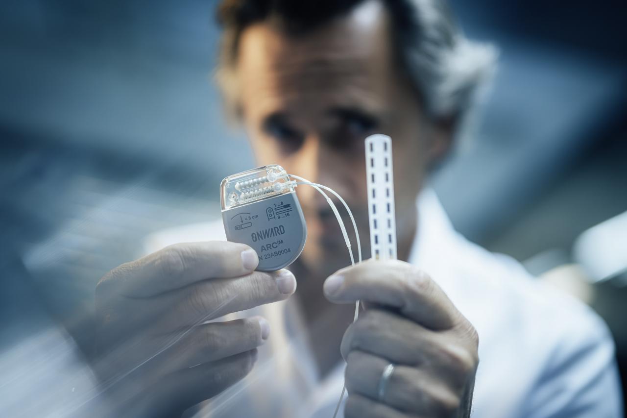 ‘Fantastisch aan de operatie van Suzanne was dat we een nieuw stuk technologie konden testen: elektroden die preciezer zijn in het aansturen van de zenuwwortels die belangrijk zijn voor de controle van de beenspieren. Dat was cruciaal voor ons, want Suzanne was onze eerste patiënt die volledig verlamd was. We hadden echt een maximale precisie nodig en de nieuwe technologie werkte wonderwel.’