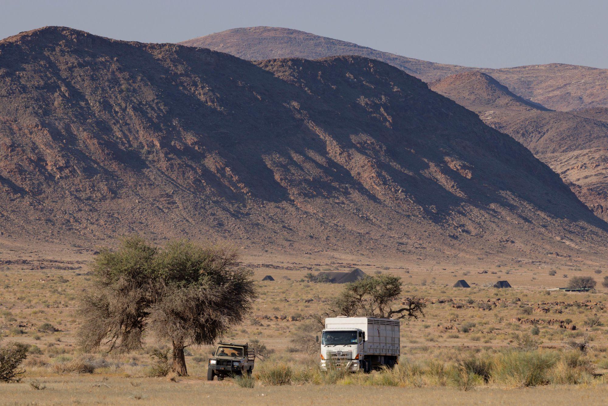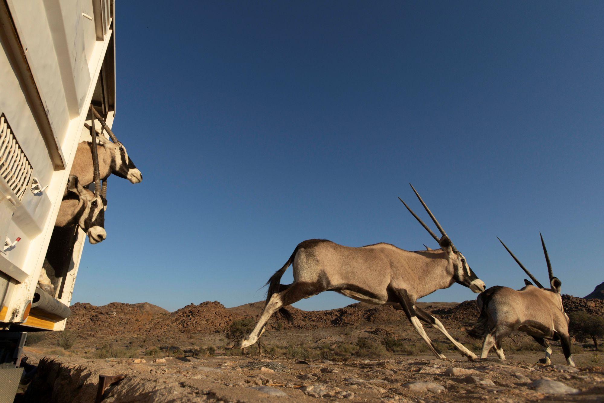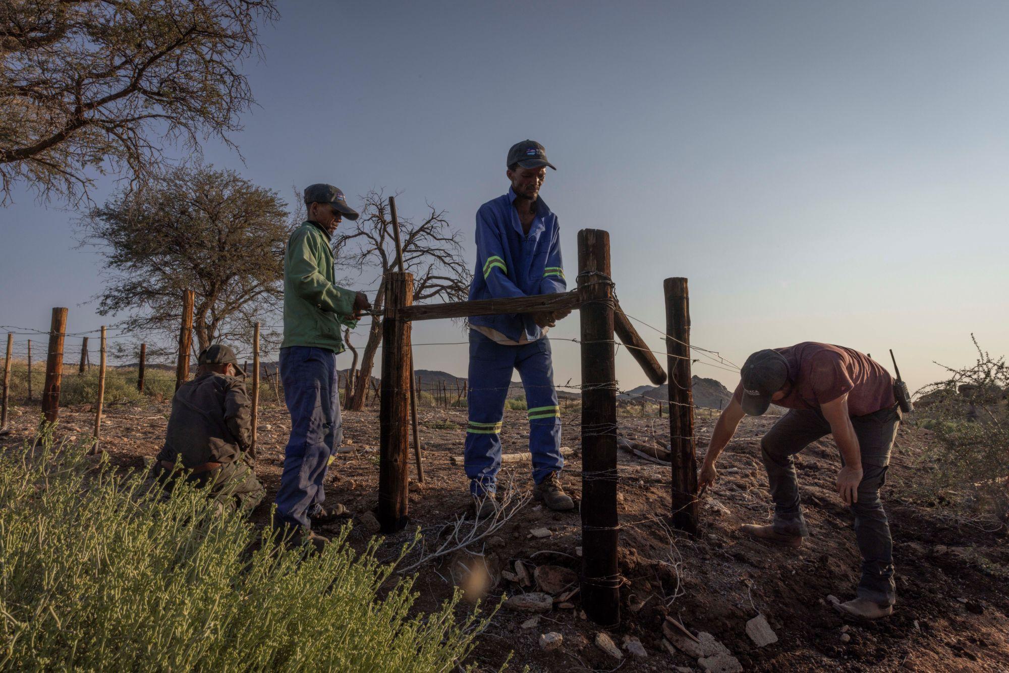 Toen Andreia Pawel en Red Barthorp in 2016 voor het eerst in het zuiden van Namibië kwamen, was ‘het land bedekt met menselijke infrastructuur’. Oorlog en ontbering hadden een gefragmenteerd landschap achter gelaten. Het migrerende wild zag zich de weg versperd door hekken en metaalafval.