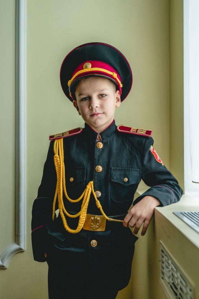 ‘We zijn in België steeds minder begaan met wat er gebeurt aan en achter de Oekraïense frontlijn’, zegt fotograaf Christophe De Muynck. Daarom reisde hij opnieuw naar het land, waar hij in de hoofdstad Kiev een militaire school bezocht. In de Vladimir de Grote Cadettenschool Nr. 23 krijgen kinderen vanaf 6 jaar behalve klassiek onderwijs ook een fysieke en militaire opleiding.