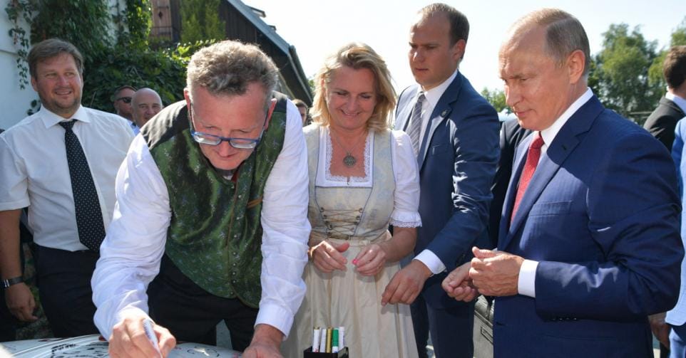 En dan zijn er nog de politieke banden. In 2017 was Poetin te gast op het trouwfeest van toenmalig Oostenrijks buitenlandminister Karin Kneissl – de uiterst rechtse FPÖ-politica verblijft momenteel in Rusland. Datzelfde jaar werd FPÖ-leider en vicekanselier Heinz-Christian Strache gefilmd terwijl hij aan een vermeende nicht van een Russische oligarch onder meer voorstelde om de grootste boulevardkrant van het land over te nemen in ruil voor overheidsopdrachten. In die periode schroefden westerse inlichtingendiensten de samenwerking met Oostenrijk terug uit vrees dat Rusland zou kunnen meeluisteren.
