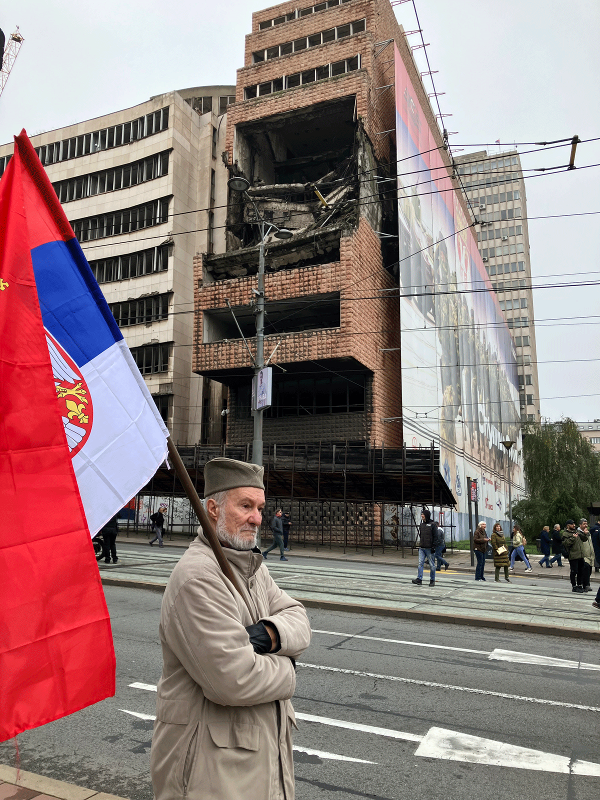 De volgende dag zetten de studenten, samen met anderen, een nieuw actiepunt op het programma. De regering heeft een overeenkomst afgesloten met Jared Kushner, de schoonzoon van de Amerikaanse president Donald Trump. Daardoor zal een militair complex in het stadscentrum, dat in 1999 aan diggelen werd gebombardeerd door de NAVO, omgevormd worden tot een Trump-hotel plus appartementen. De ruïne dient tot nu als monument ter nagedachtenis van die bombardementen.