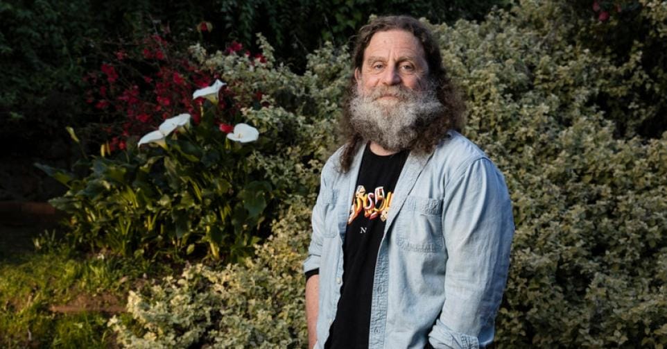 ‘Vrije wil kun je op twee manieren definiëren’, zegt hij met fonkeloogjes die amper waar te nemen zijn tussen zijn wilde baard en uitbundige haardos wanneer we hem via videocall spreken. ‘De eerste is neurobiologisch en luidt dat je over een vrije wil beschikt wanneer een neuron, een aantal neuronen of zelfs een heel deel van het brein iets doet wat volkomen los staat van zijn verleden. Omdat je dat niet experimenteel kunt testen heb je er niets aan.