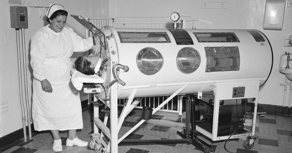Vanaf de 19de eeuw braken er geregeld polio-epidemieën uit in Europa en de VS. Na de Tweede Wereldoorlog volgden ze elkaar steeds sneller op. En dat had – al klinkt het misschien vreemd – alles te maken met de verbeterende levensomstandigheden. Het poliovirus wordt overgebracht via de stoelgang. Naarmate mensen in de geïndustrialiseerde wereld hygiënischer gingen leven, werd de kans kleiner dat ze als baby met polio besmet geraakten. Een besmetting gebeurde dan vaak pas op latere leeftijd. En dat was een probleem. Als je als baby polio krijgt, zijn de risico’s klein én ben je nadien levenslang immuun. Maar voor schoolgaande kinderen en tieners kan de ziekte erg gevaarlijk zijn. Zij lopen een veel hoger risico op mogelijk permanente verlamming. Ook de ademhalingsspieren kunnen worden aangetast. Patiënten werden dan – soms levenslang – afhankelijk van een beademingstoestel, de ‘ijzeren long’.