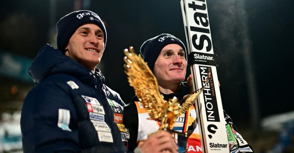 Precies tien jaar nadat Peter Prevc op 6 januari 2016 het Vierschansentoernooi had gewonnen, mocht zijn broer Domen vorige week de Gouden Adelaar – de trofee voor de eindwinnaar van het beroemde schansspringtoernooi – in de lucht steken. De Sloveen dankte achteraf zijn broer Peter: ‘Ik heb gezien hoeveel toewijding en werk hij in zijn carrière gestoken heeft. Ik heb hem daarvoor altijd bewonderd.’