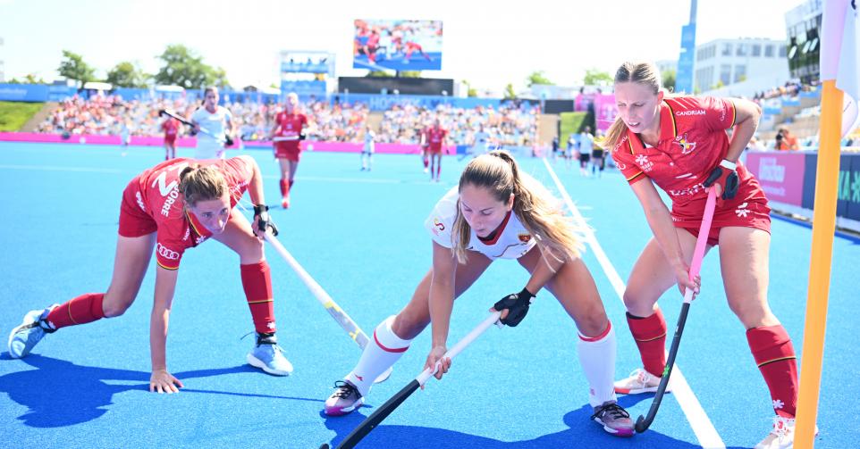 De Panthers namen een aarzelende start tegen La Roja en keken na 18 minuten voor het eerst tegen een achterstand aan. Op voorzet van Molina trof Patricia Alvarez in één tijd raak. Pas vlak voor rust viel de gelijkmaker. Ambre Ballenghien dwong een strafcorner af en Stephanie Vanden Borre maakt die af: 1-1, meteen ook de ruststand in Mönchengladbach.