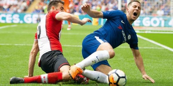 Sport Sport No pain, no gain Wesley Hoedt, de Nederlandse verdediger van Southampton, zal geel krijgen voor deze pijnlijke overtreding op Eden Hazard. Chelsea zette Southampton opzij met 2-0 in de halve finales van de FA Cup. Op zaterdag 19 mei treft het Manchester United in de finale.
