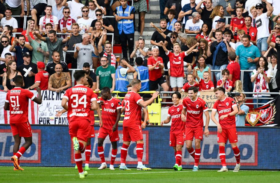 De Antwerpenaren staan als enige eersteklasser nog met het maximum van de punten achter hun naam. Racing Genk en Club Brugge volgen op de gedeelde tweede plaats met zestien punten, vijf minder dan de leider. De Genkenaars lieten deze speeldag in eigen huis punten liggen in de Limburgse derby tegen STVV (0-0), Club Brugge opende vrijdagavond de speeldag met een 4-0 zege in de Brugse derby tegen Cercle, komend weekend de tegenstander van Antwerp.