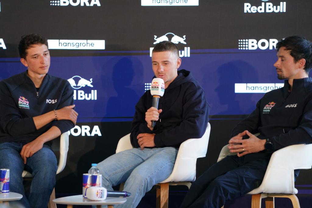 Vorige week, tijdens de persvoorstelling van zijn nieuwe ploeg Red Bull-BORA-hansgrohe, droeg Remco Evenepoel een neutrale, zwarte sweater zonder sponsorlogo’s. En toen hij diezelfde voormiddag met zijn nieuwe teamgenoten ging trainen, deed hij dat in de outfit van zijn oude ploeg, Soudal Quick-Step, maar wel op een fiets van zijn nieuwe team.