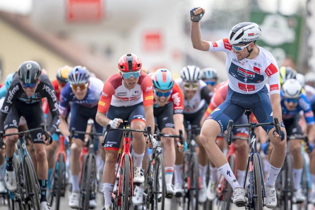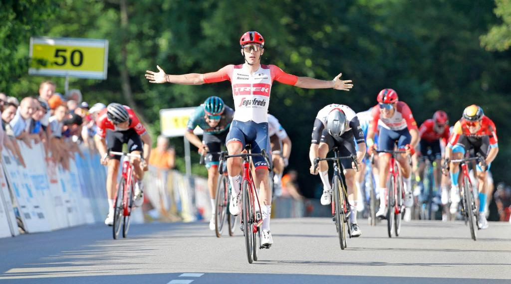 9 juni 2023, Gippingen. Thibau Nys boekt in de Grote Prijs van het Kanton Aargau zijn tweede profzege.