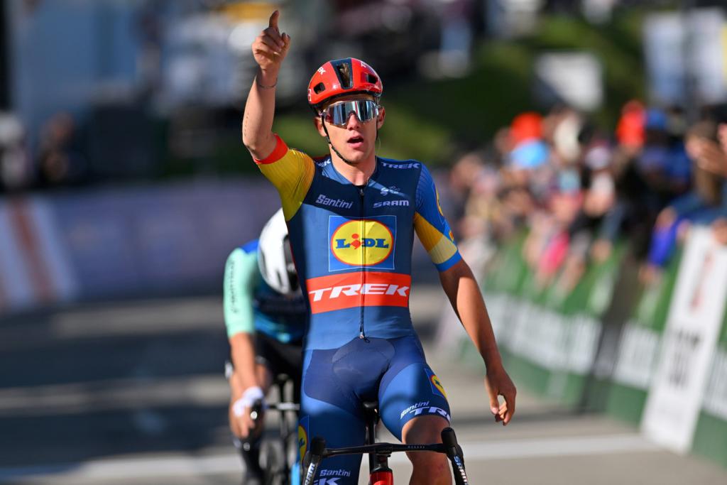 NYS: Hét scharniermoment in zijn carrière. Op een pittig parcours rijdt hij daar naar een kopgroep toe met namen als Juan Ayuso, Filippo Baroncini en Lennert Van Eetvelt, én maakt hij het als eerstejaarsbelofte ook nog eens af.